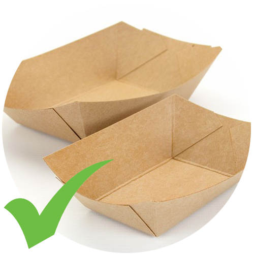 Paper and card food trays. Avoid PLA to have fully compostable and recyclable containers.