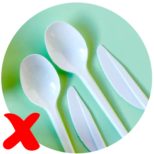 Single use plastic cutlery & chopsticks, including PLA & CPLA.