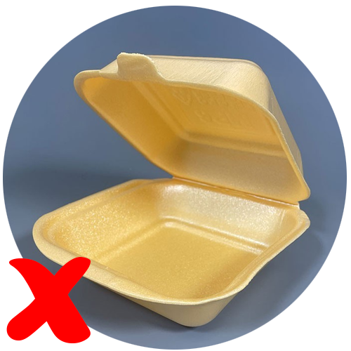 Expanded polystyrene containers (EPS) & extruded polystyrene (XPS).