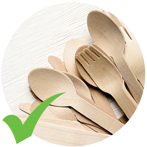 Paper and wooden cutlery and chopsticks. Easy to recycle and will degrade in a natural environment.
